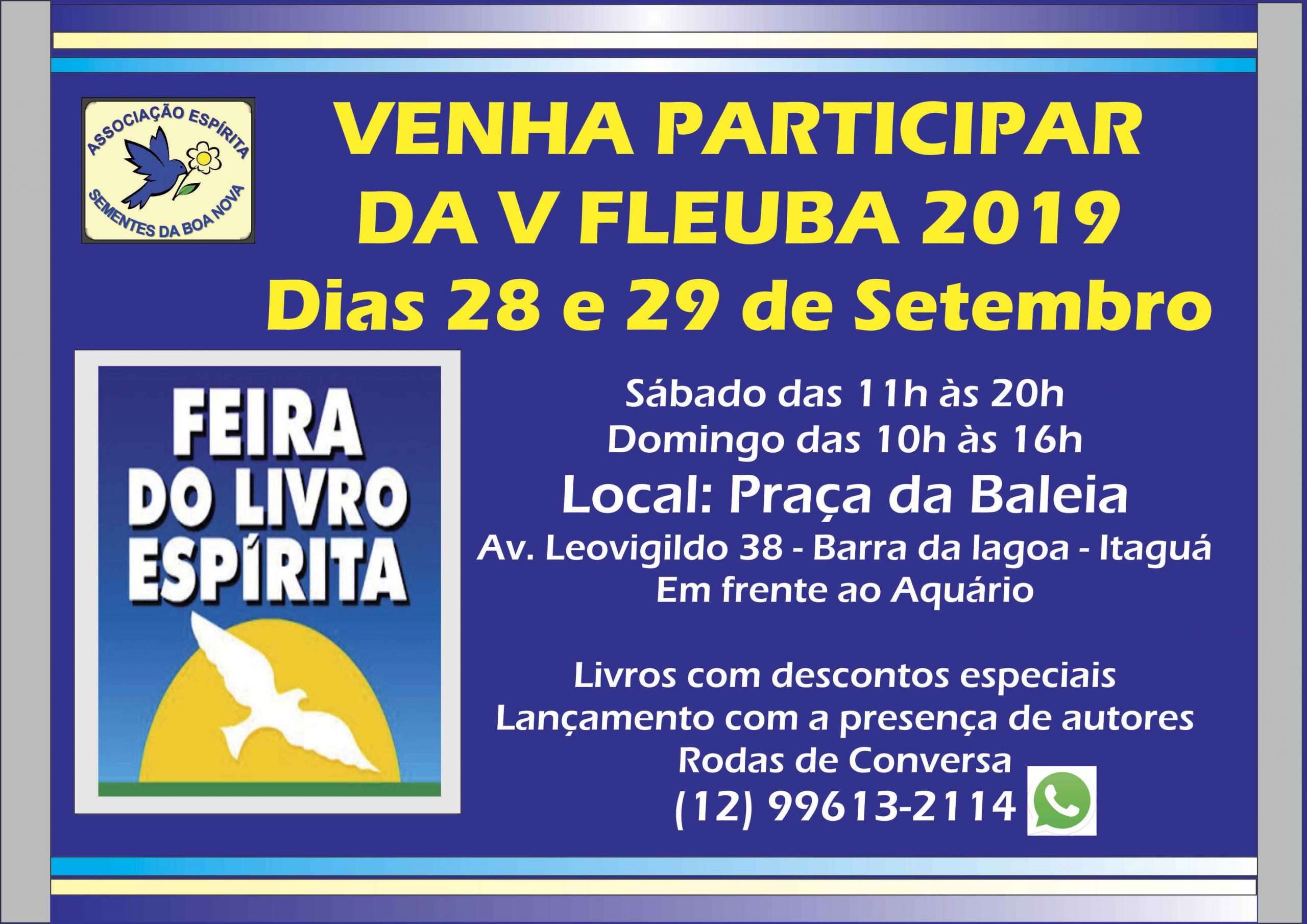 A FLEUBA ( Feira do Livro Espírita de Ubatuba). A primeira edição da Feira do Livro Espírita de Ubatuba em 2015, foi pioneira na categoria: a praça pública da cidade jamais fora, até a presenta data, espaço para que os interessados (adeptos ou não) pudessem conhecer e comprar livros sobre a doutrina espírita cristã. Dado  o seu sucesso, a feira permaneceu e já está em sua quinta edição, sempre em locais públicos ubatubenses. Para os curiosos despidos de preconceitos, a FLEUBA significa uma oportunidade de conhecer mais sobre os princípios espíritas. O objetivo é divulgar a doutrina, através de títulos espíritas como romances, livros infantis e doutrinários,  de varios escritores e médiuns consagrados tais como Kardec, Chico Xavier, Vera Lúcia Marinzeck e Richard Simonetti entre outros autores.