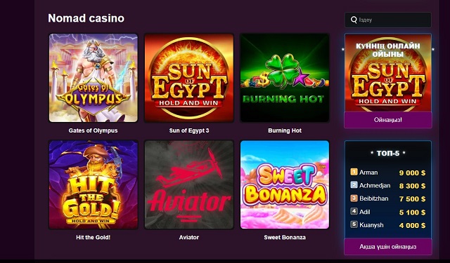 Nomad казино сайтының бейне ойындарының нұсқасы Қазақстан